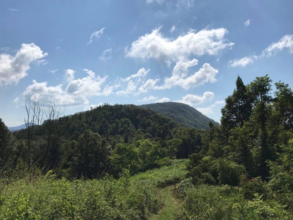 The trail head can be found here. It’s about noon when my brother and I set off up the hill toward the summit of Flat Top Mountain, north of Burnsville, North Carolina. The trail guide I have pulled up on my phone says the first part of the trail gains 100 feet of elevation in the first 400 feet and the trail looks every bit that steep. By the time we break out of the trees into Joe Lewis Field, the both of us are too winded to care who Joe Lewis is or why he has a field. With a brief stop to catch our breaths, it becomes clear we’ve stumbled onto a place where few people have been. Aside from the mowed path up the hill, the meadow is covered in brambles and grasses almost 6 feet tall and is a veritable butterfly garden. Blue and black swallowtails flit from thistle to thistle and the sound of bees buzzing is loud enough to make us wonder whether there wasn’t a swarm just out of sight.